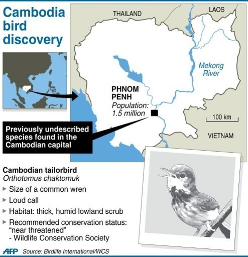 Numele ştiinţific dat noii specii este orthotomus chaktomuk, sau pasărea croitor de Cambodgia. Specialiştii sunt uluiţi de faptul că această specie a fost descoperită în Phnom Penh şi în alte câteva situri din apropierea oraşului, printre care un şantier de construcţii aflat la marginea oraşului.