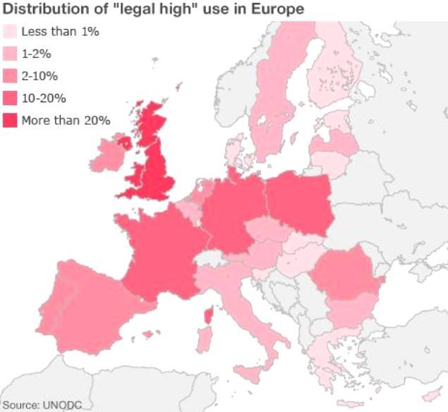 Cea mai mare piaţă este în SUA, unde utilizarea unor asemenea substanţe în rândul tinerilor pare să fie de două ori mai răspândită decât în Uniunea Europeană. În cadrul UE, Marea Britanie se dovedeşte a fi o piaţă deosebit de receptivă.