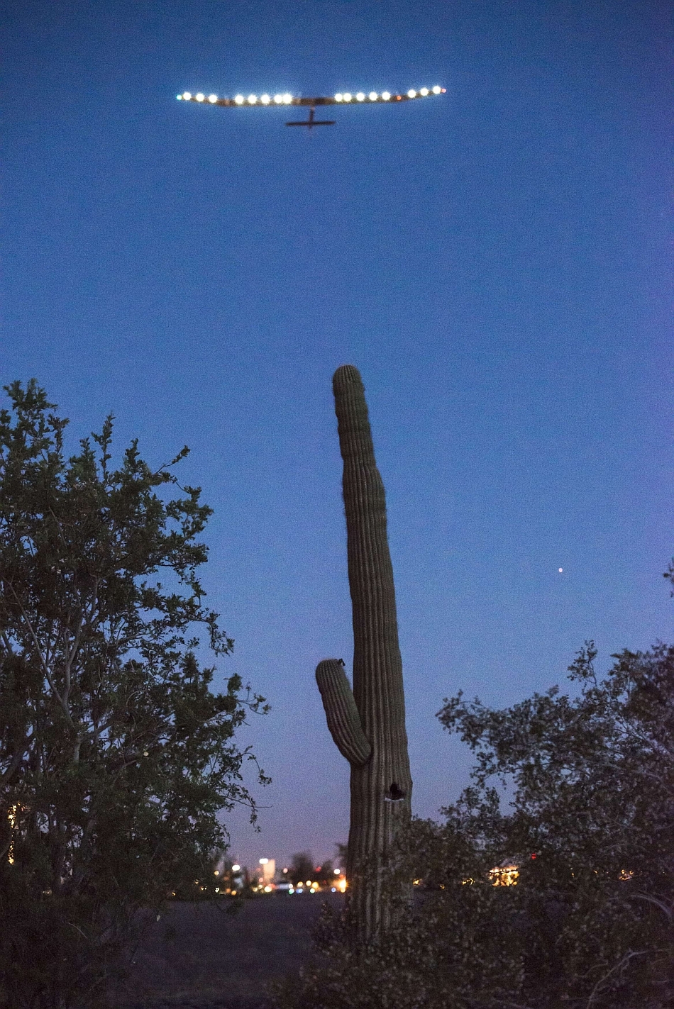 Traversarea Statelor Unite ale Americii cu avionul experimental propulsat cu ajutorul energiei solare a început în San Francisco, în luna mai, aparatul atingând o viteză de 70 de kilometri pe oră. Aceasta a inclus escale în Phoenix, Arizona, Dallas, Texas şi St Louis, Missouri.