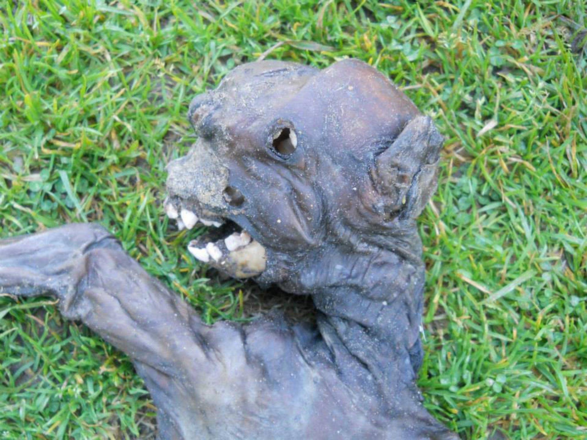În cele din urmă, creatura cu trup fusiform şi craniu stafidit s-a dovedit a nu fi ceva neobişnuit: „Era un pui de babuin, femelă, care avea cordonul ombilical ataşat de corp”, a explicat dr. Magdalena Braum.