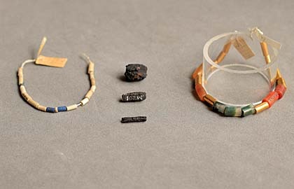 Cele nouă mărgele provin din două morminte ce datează din jurul anului 3.200 î.e.n., unde au fost descoperite în coliere alături de minerale terestre exotice precum lapis lazuli, agat şi aur. Mărgelele sunt stocate în Muzeul Petrie de la University College London (UCL).