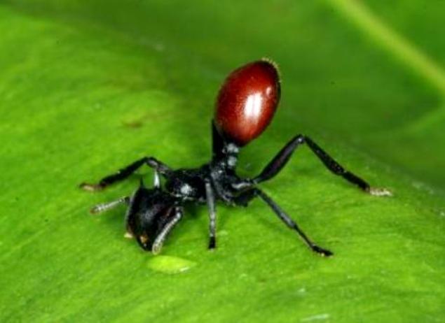 De exemplu, viermele parazit Myrmeconema neotropicum, care parazitează furnicile Cephalotes atratus din America Centrală şi de Sud, duce chiar la modificarea aspectului gazdei sale: furnicile infestate capătă un abdomen umflat, de culoare roşie, care imită aspectul unui mic fruct. Păsările, induse în eroare, consumă aceste furnici care seamănă cu nişte bobiţe de fructe, eliminând apoi viermele în excremente; acestea sunt colectate de furnici pentru a-şi hrăni larvele şi, astfel, ciclul se reia.