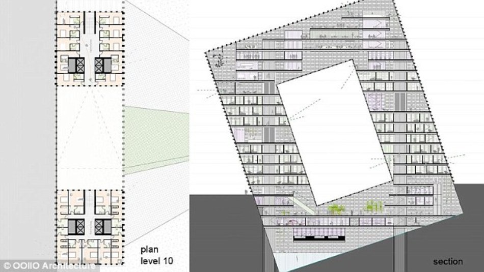 Structura a fost proiectată de firma de arhitectură OOIIO, din Madrid, Spania; hotelul ar urma să fie construit pe o faleză, având vedere atât spre munţi, cât şi spre ocean. Arhitecţii susţin că au ales această formă ciudată deoarece o structură clasică ar fi format o barieră vizuală, ce ar fi blocat vederea spre ocean.