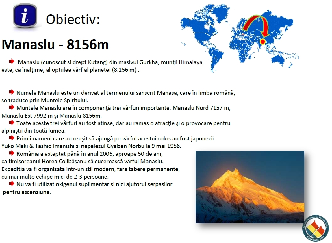 Proiectul “Expediţia românescă Himalaya, Manaslu 8156” este o iniţiativă ce a reuşit să formeze o echipă din unii dintre cei mai buni alpinişti din Transilvania. Scopul acestei echipe este de a reuşi ascensiunea vârfului Manaslu, ce se înalţă la 8.156 metri deasupra nivelului mării.