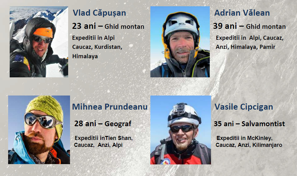 Echipa este compusă din patru persoane ce au împreună experienţa a peste 20 de expediţii pe 4 continente: