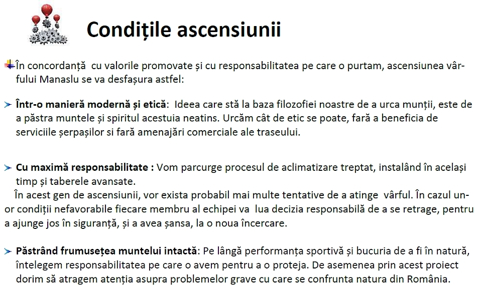 Acest proiect constituie un prim pas al unui proiect mai amplu care presupune ascensiunea unor vârfuri din Himalaya, pe rute dificile, într-un stil modern, fără ajutorul şerpaşilor şi al oxigenului suplimentar.