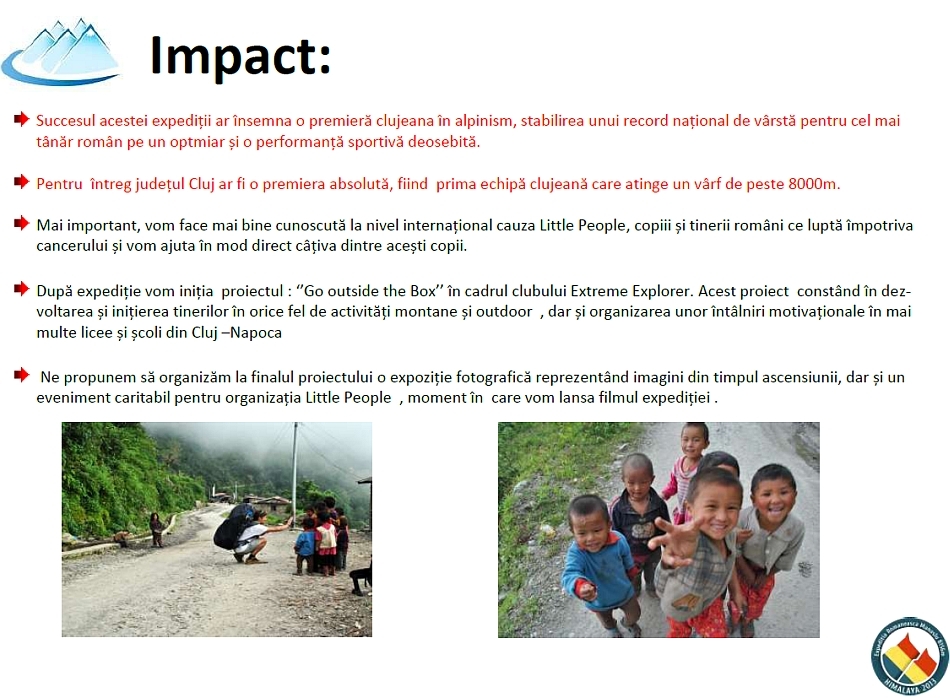Reuşita ar reprezenta prima ascensiune a unui vârf de peste 8000 de metri pentru o echipa clujeană şi un record de vârstă pentru cel mai tânăr român pe un vârf de peste 8000 metri (23 ani).