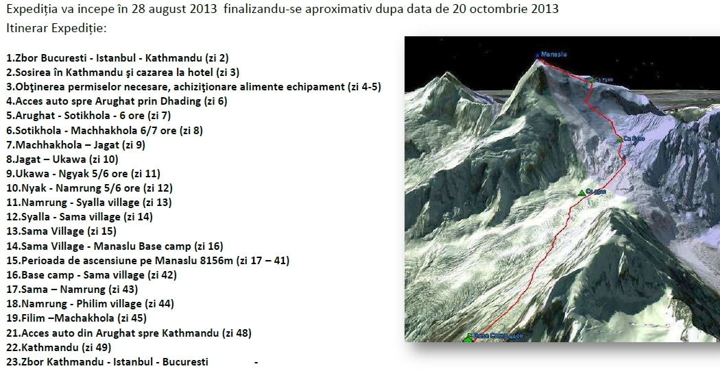 Expediţia Manaslu 2013 va începe pe 28 august 2013 şi va dura până la jumătatea lunii octombrie.