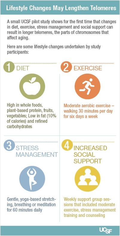 Acum, ultimul studiu realizat de prof. Dean Ornish şi colegii săi sugerează că telomerii pot fi lungiţi, dacă ne străduim să adoptăm un stil de viaţă sănătos.