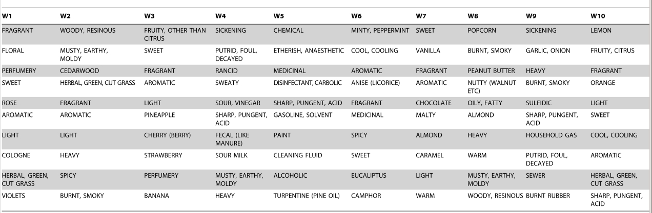 „Aceste 10 categorii reflectă atribute importante ale lumii înconjurătoare – pericol, mâncare şi aşa mai departe. Dacă ştii aceste categorii de bază, poţi începe să te gândeşti să compui mirosuri. Încă nu am reuşit să rezolvăm problema prezicerii unui miros pe baza structurii sale chimice, dar sperăm să reuşim acest lucru”, a spus Castro.