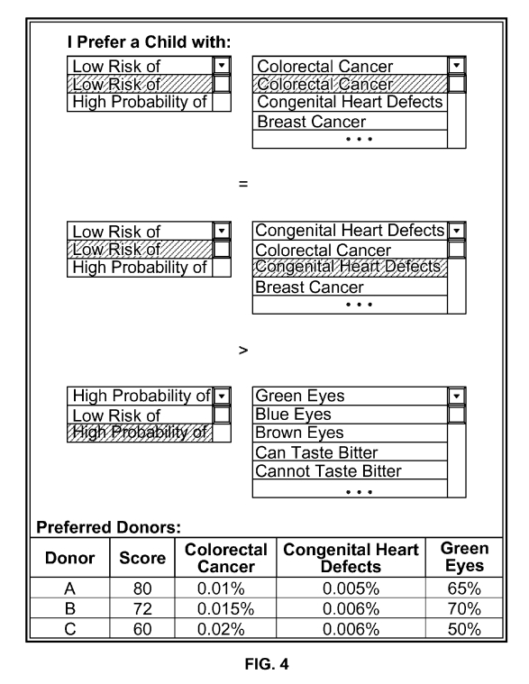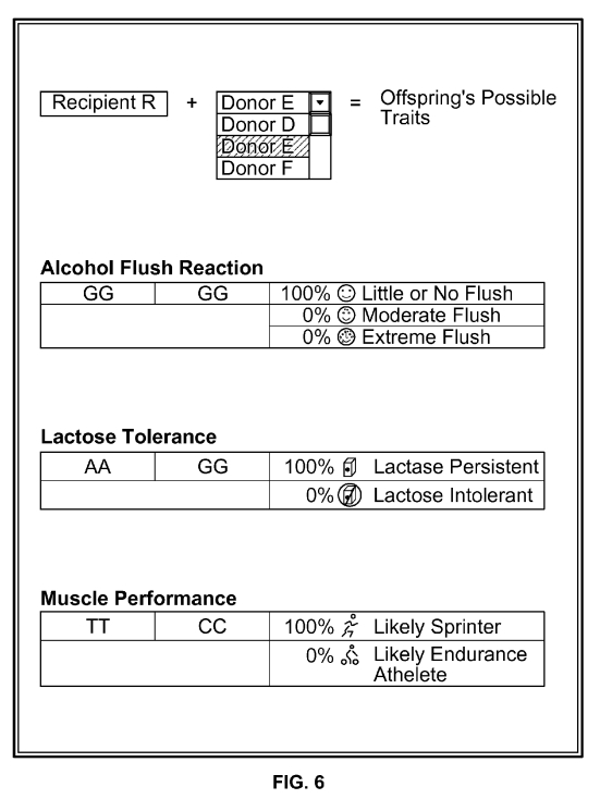 Acest nou brevet, pentru care compania a aplicat în 2008, se referă la tehnologia care este folosită în cadrul acelui calculator. Cu toate acestea, brevetul merge şi mai departe, descriind un sistem care ar permite părinţilor să şi definească preferinţele în ceea ce priveşte o plajă de trăsături, de la unele medicale („Prefer un copil cu o probabilitate ridicată de a trăi mult”) până la unele estetice („Prefer un copil cu o probabilitate ridicată de a avea ochi albaştri”).