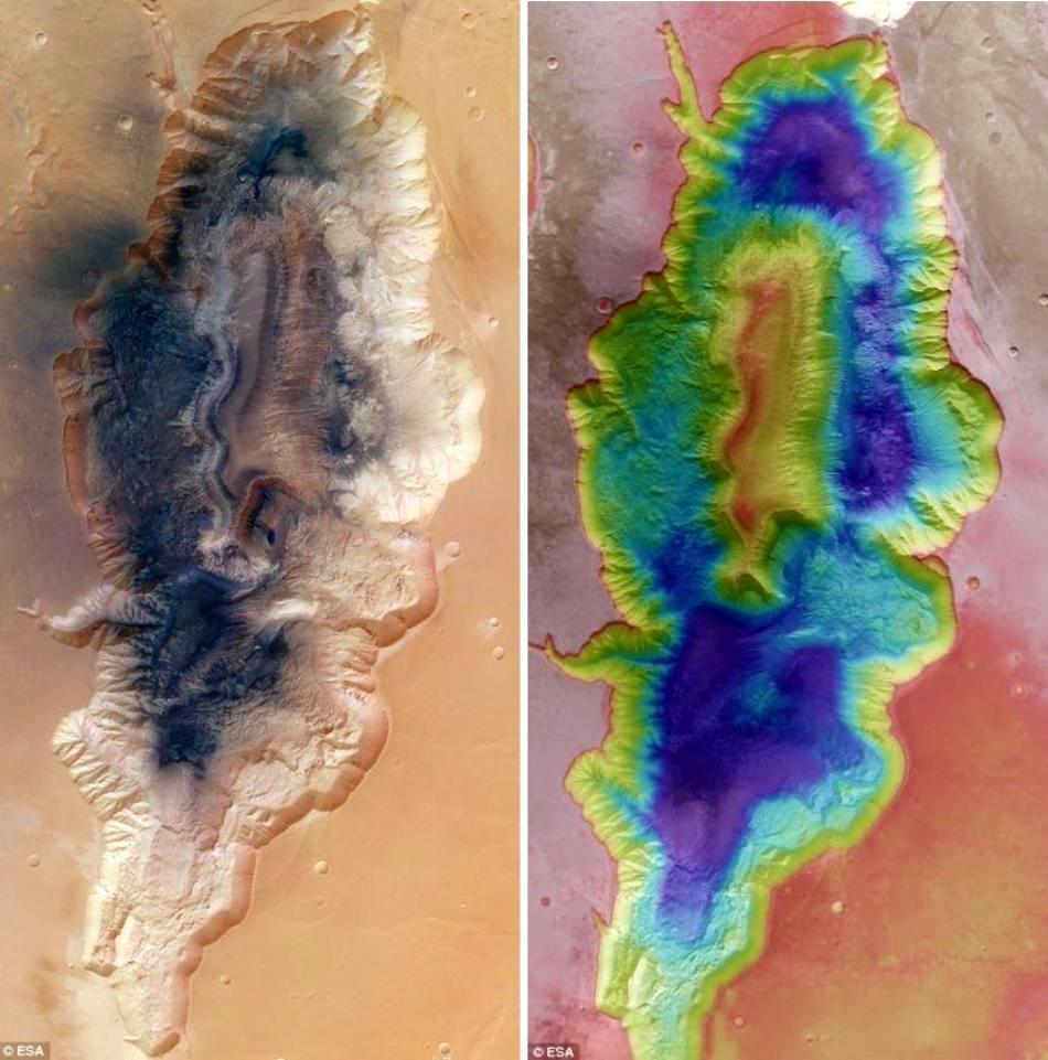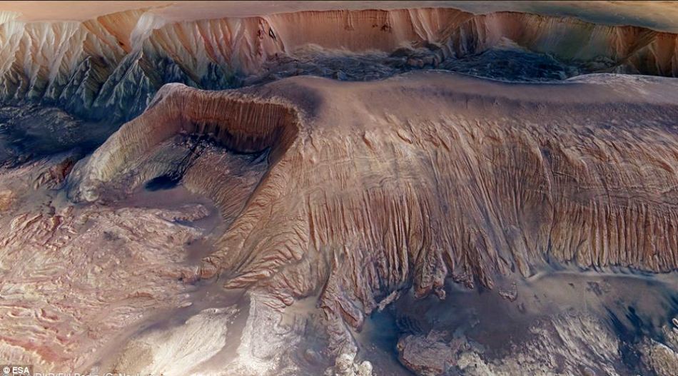 Deşi sonda Mars Express a ESA a survolat această regiune marţiană de mai multe ori, imaginile luate cu prilejul ultimului survol – fotografii făcute în trei lungimi de undă diferite – sunt cele mai spectaculoase, dezvăluind peisajul uriaşului canion mai amănunţit ca oricând.