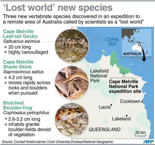 Cea mai importantă descoperire a fost gecko-ul cu coada în formă de frunză, o creatură „cu aspect primitiv” lungă de 20 de centimetri care este o relicvă de pe vremea când pădurile tropicale erau mai răspândite în Australia. Animalul a primit numele Saltuarius eximius.