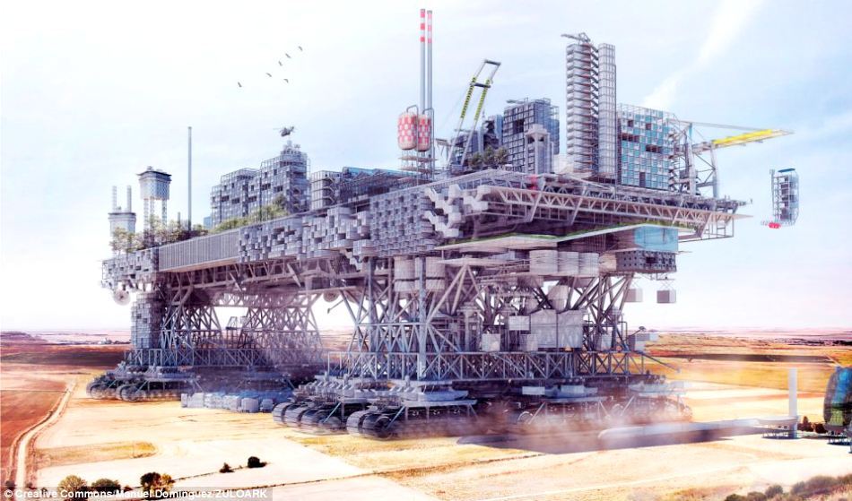 În viziunea sa, oraşul mobil s-ar putea muta dintr-un loc în altul, cu ajutorul unor şenile gigantice, deplasându-se în căutarea unor zone în care să existe oportunităţi mai bune de muncă pentru locuitori.