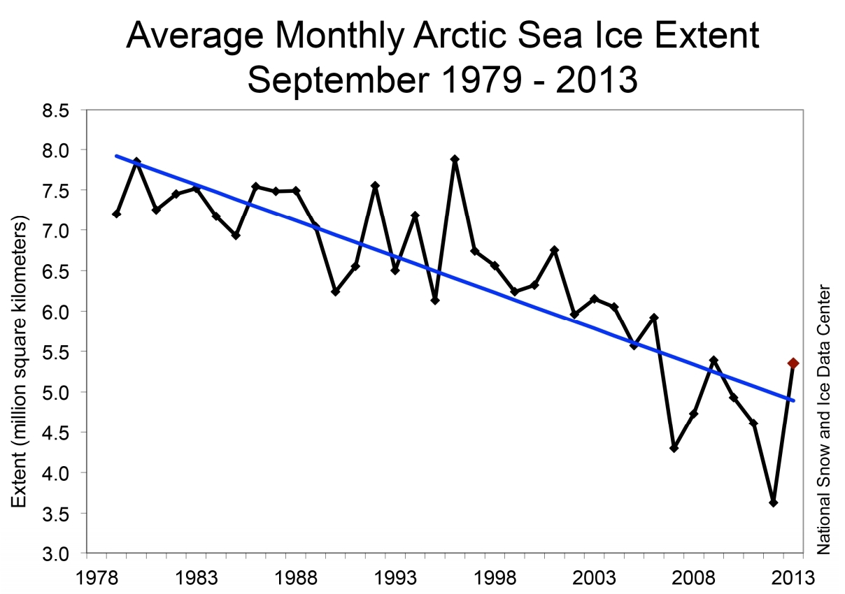 „Nivelul mediu al mării a atins un nou record în martie 2013”, afirmă experţii. „Acest nivel s-a ridicat cu un ritm mediu de 3,2 milimetri pe an, ceea ce este aproape de ritmul de aproximativ 3 milimetri pe an observat timp de un deceniu, în 2001-2010, şi este dublu faţă de cel înregistrat în secolul al XX-lea, de 1,6 milimetri pe an”, avertizează ei.