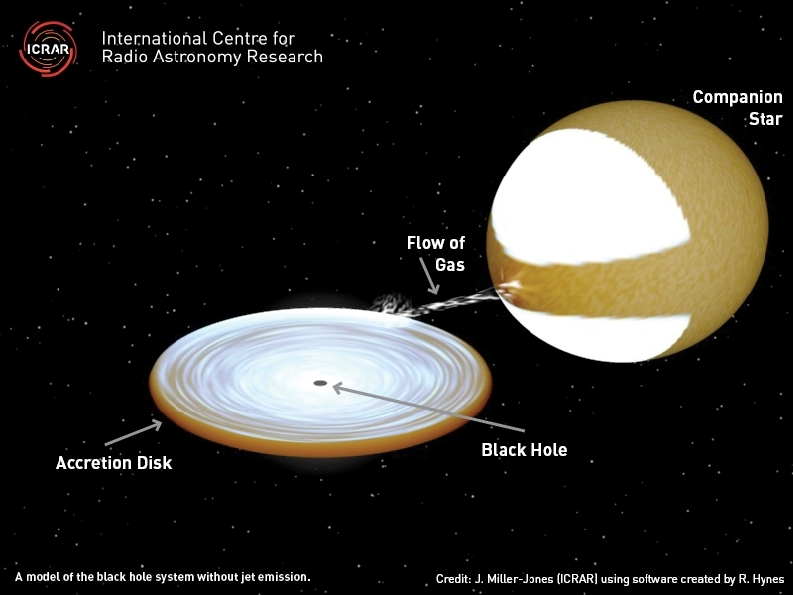 Se pare că sursa acestor atomi este discul de acreţie al găurii negre, o centură de gaze fierbinţi care se învârt în jurul găurii.