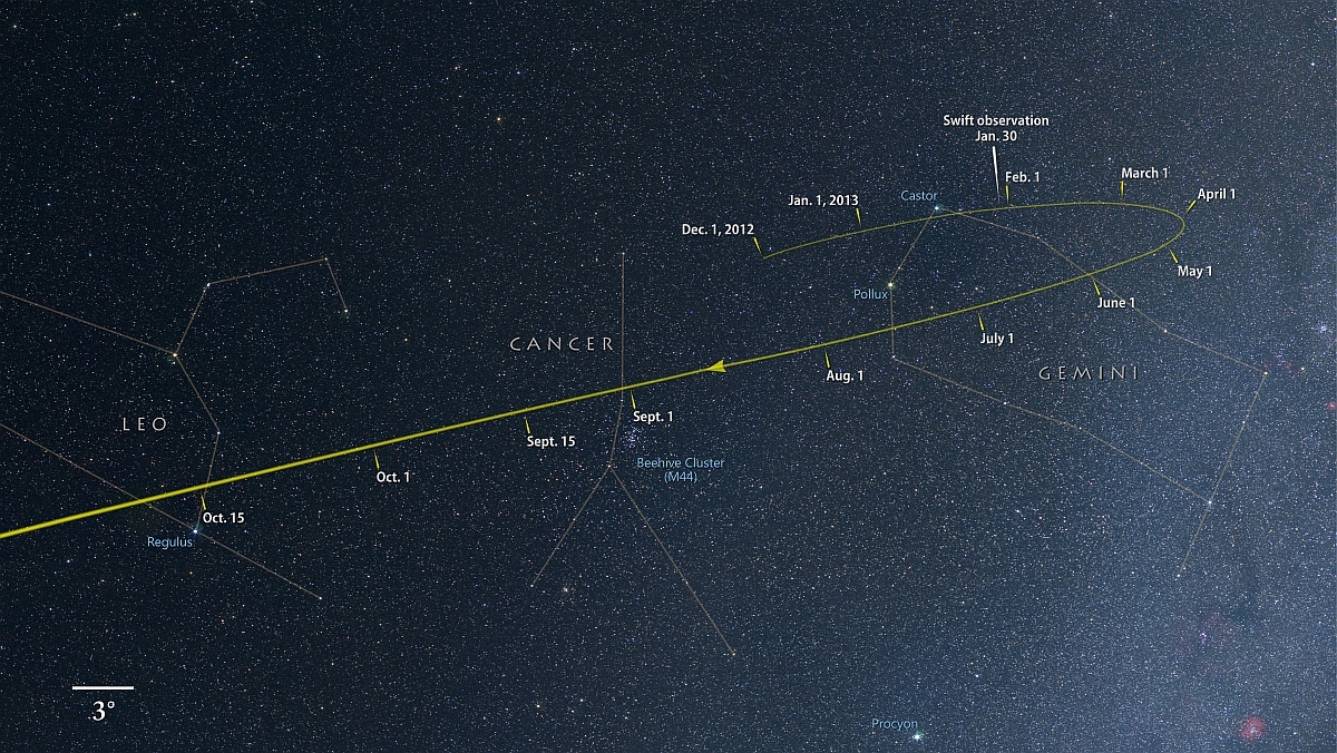 Specialiştii se aşteaptă ca ISON să fie vizibilă cu ochiul liber la primele ore ale dimineţii în luna decembrie şi în timpul nopţii pe durata lunii ianuarie.