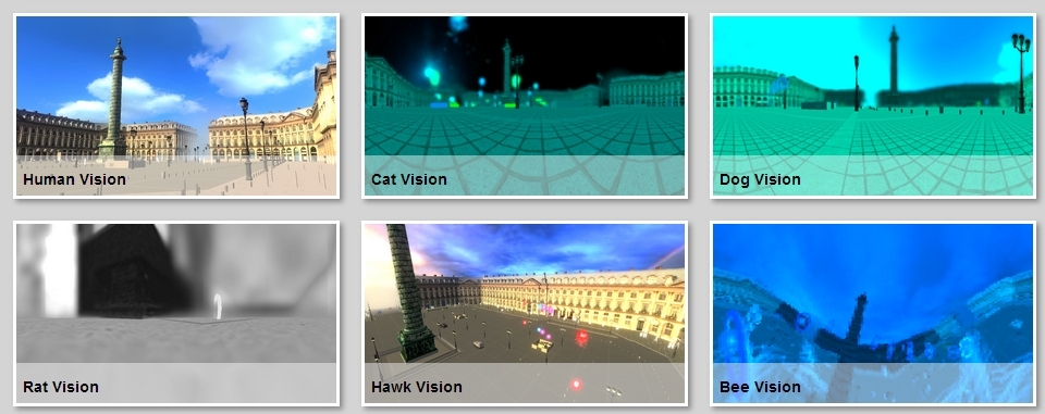 Simularea online a fost creată de compania Dassault Systèmes în colaborare cu oftalmologul veterinar Didier Schmidt-Morand. În cadrul simulării, oamenii pot „adopta” vederea a cinci animale – pisică, şobolan, câine, şoim şi albină – pe măsură ce se deplasează prin Place Vendôme, Paris.