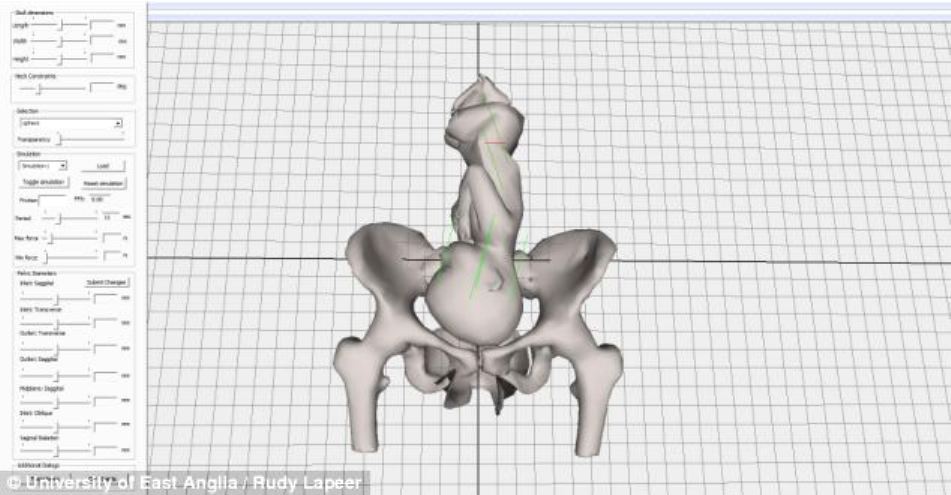 Programul de simulare va folosi date obţinute prin ecografie pentru a creea un model geometric tridimensional al capului şi corpului copilului, precum şi al corpului şi pelvisului mamei.