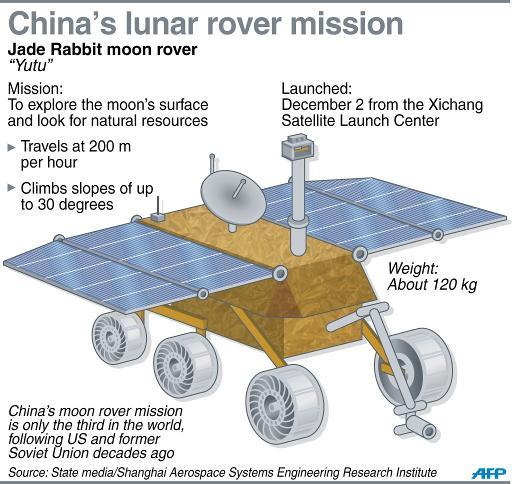 Roverul Iepurele de jad, înzestrat cu panouri solare pentru a se alimenta cu energie, va avea sarcina de a efectua analize ştiinţifice şi de a trimite pe Terra imagini în 3D cu satelitul natural al Terrei.