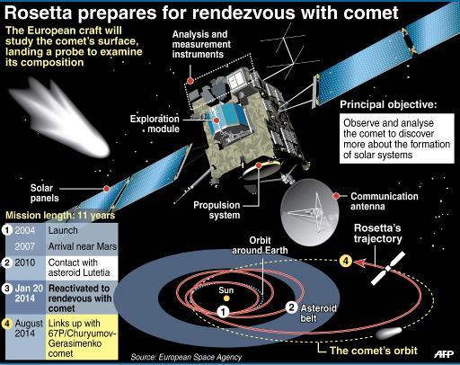 Înainte de setarea sondei spaţiale pe modul „hibernare”, în iunie 2011, întrucât aceasta nu dispunea de lumină suficientă pentru alimentarea cu energie, oamenii de ştiinţă de la Agenţia Spaţială Europeană (ESA) au programat „trezirea” internă a Rosettei pentru data de 20 ianuarie 2014, la ora 10.00 GMT.