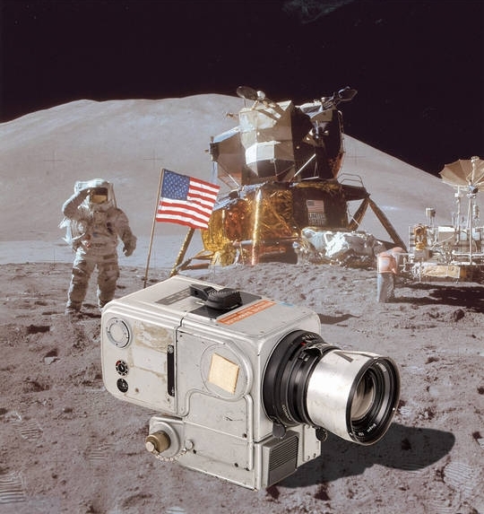 Astronautul american Jim Irwin a folosit aparatul Hasselblad şi a realizat 299 de fotografii în cele trei zile petrecute pe Lună în timpul misiunii Apollo 15. Aparatul este pus în vânzare de un colecţionar italian, care îl cumpărase de la un american.