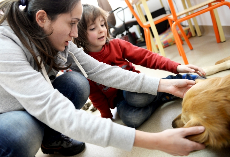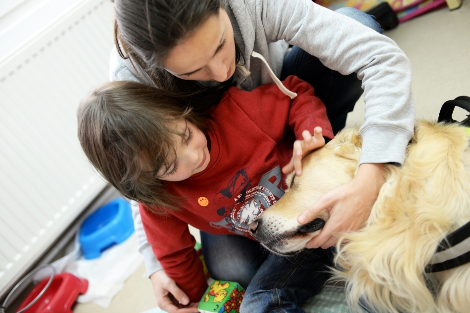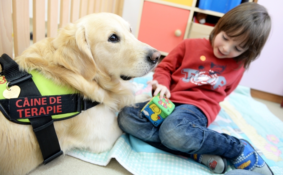 Cea mai nouă metodă folosită constă în implicarea câinilor în terapia copiilor.