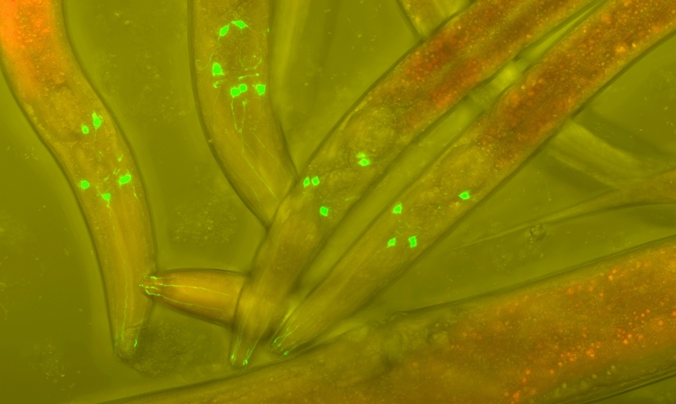 Cercetătorii au studiat viermi nematozi de dimensiuni foarte mici (cca. 1 mm), din specia Caenorhabditis elegans, în celule cărora au introdus anumite proteine care emiteau lumină atunci când detectau anumite leziuni la nivelul mitocondriilor.