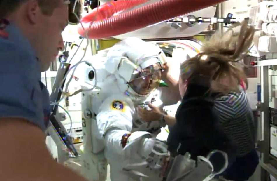 În momentul producerii primei scurgeri de apă, inginerii de la NASA au crezut că lichidul provenea din recipientul conţinând apa băută de astronaut în timpul ieşirii sale pe orbită.