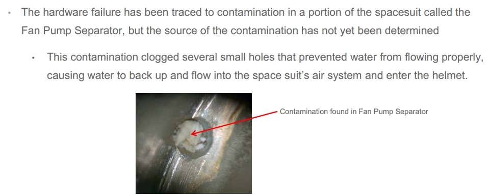 „Costumul spaţial suferise aceeaşi defecţiune, la sfârşitul unei ieşiri în spaţiu, cu o săptămână înainte. Acel incident nu a dus la organizarea unei anchete complete, care ar fi putut să evite punerea în pericol a unui membru al echipajului de pe Staţia Spaţială Internaţională„, a precizat NASA într-un raport publicat pe site-ul său.