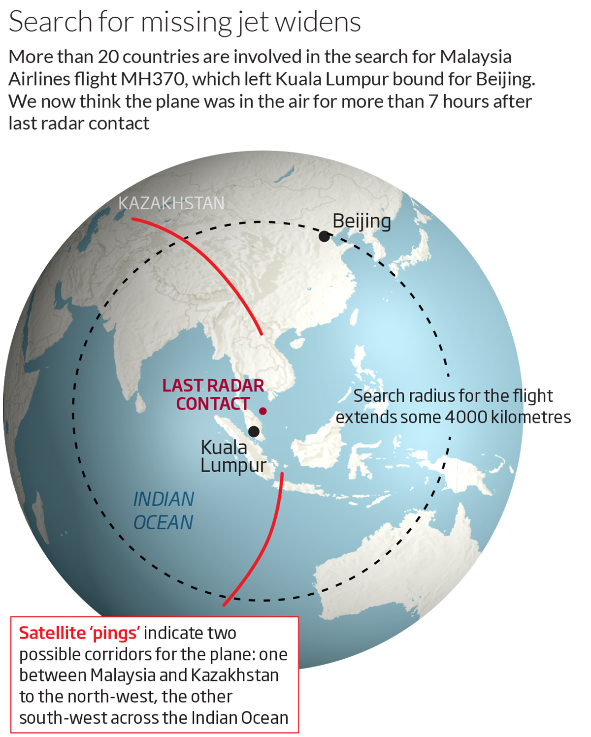 Avionul Boeing 777 al Malaysia Airlines a dispărut brusc de pe radare în timpul unei curse de la Kuala Lumpur spre Beijing. Experţii cred că aeronava a mai zburat aproximativ 7 ore după pierderea semnalului.
