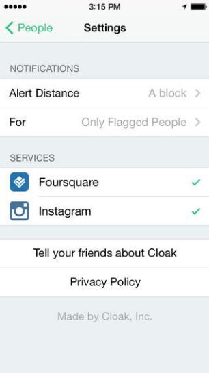 Aplicaţia Cloak avertizează utilizatorul atunci când o astfel de persoană (selectată în prealabil) se află în apropiere şi chiar emite un semnal de alarmă sonor, atunci când aceasta ajunge „periculos” de aproape.
