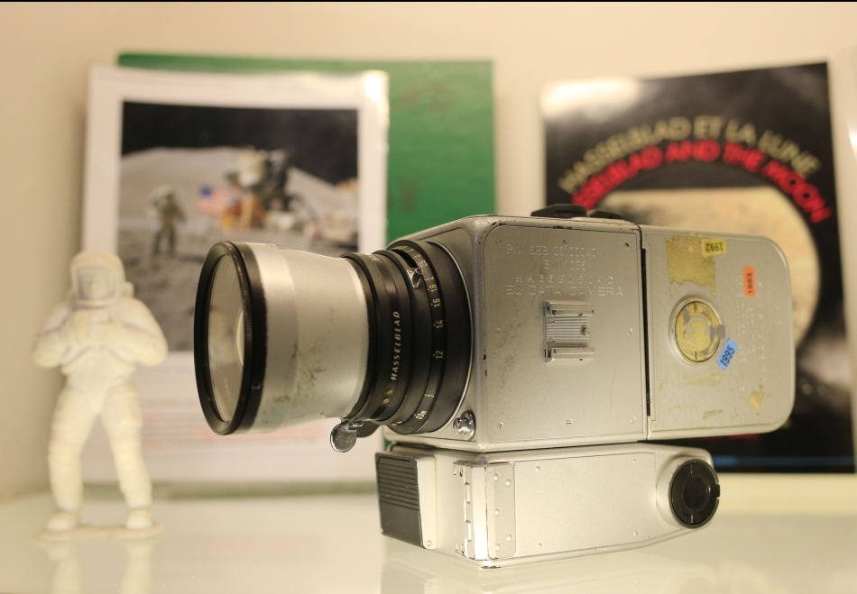 Astronautul american Jim Irwin a folosit aparatul Hasselblad 500 şi a realizat 299 de fotografii în cele trei zile petrecute pe Lună în timpul misiunii Apollo 15, în anul 1971. Aparatul a fost pus în vânzare de un colecţionar italian, care îl cumpărase de la un american.