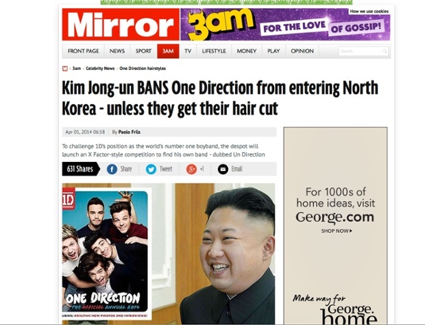 The Mirror afirmă că liderul nord-coreean Kim Jong-un a interzis accesul grupului anglo-irlandez One Direction atât timp cât membrii acestei trupe de adolescenţi nu adoptă tunsoarea sa celebră.