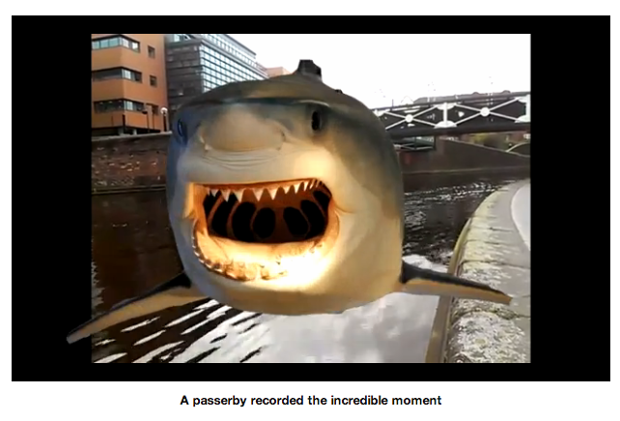 The Birmingham Mail a publicat fotografia unui rechin de dimensiuni uriaşe surprins în timp ce „înota” în canalul care trece prin centrul acestui oraş britanic.