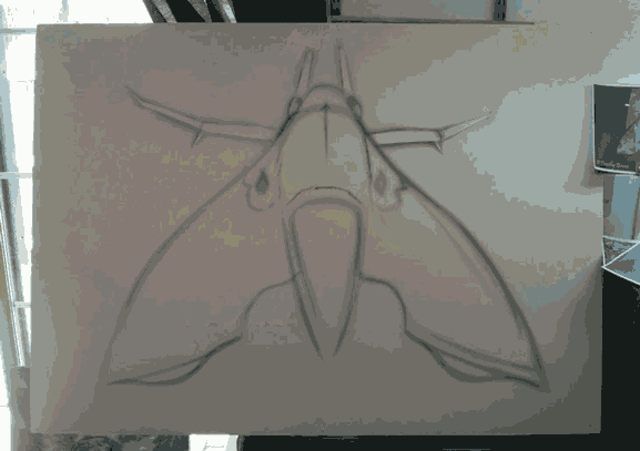 Mai întâi a desenat molia pe un perete, apoi manechinul Audrey a fost pictat pe corp cu un model de camuflaj, care se potrtivea perfect cu desenul insectei.