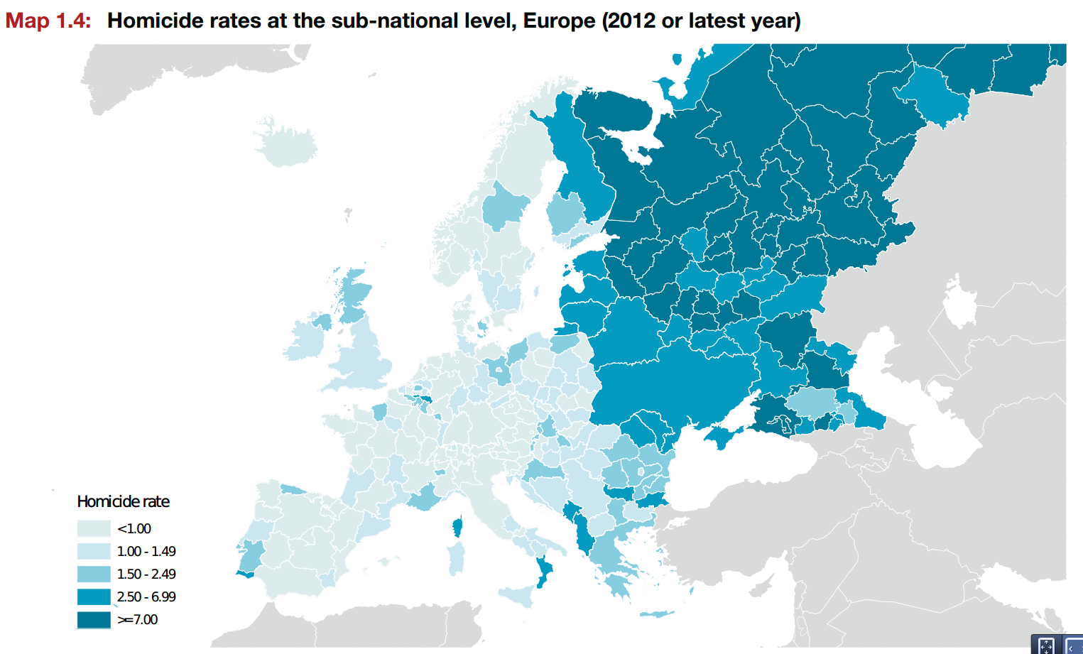 În anul 2012, un număr mai mic de crime a fost raportat în estul Asiei, în sudul şi vestul Europei.