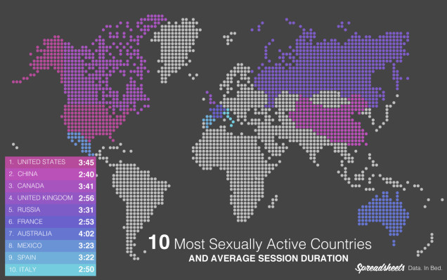 Potrivit Spreadsheets, durata medie a unui contact sexual este cuprinsă între 3 şi 10 minute.