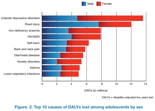 Depresia este pe plan global principala cauză de boală în această clasă de vârstă (10-19 ani), iar sinuciderea este a treia cauză de mortalitate.