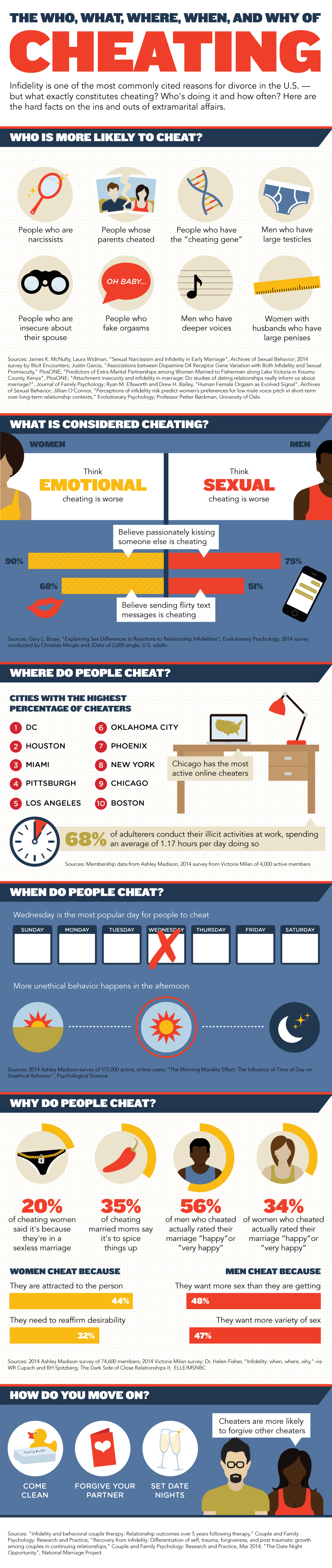 Potrivit acestui infografic, de cele mai multe ori persoanele care sunt narcisiste sau provin dintr-o familie dezbinată sunt mai predispuse să-şi înşele partenerul.