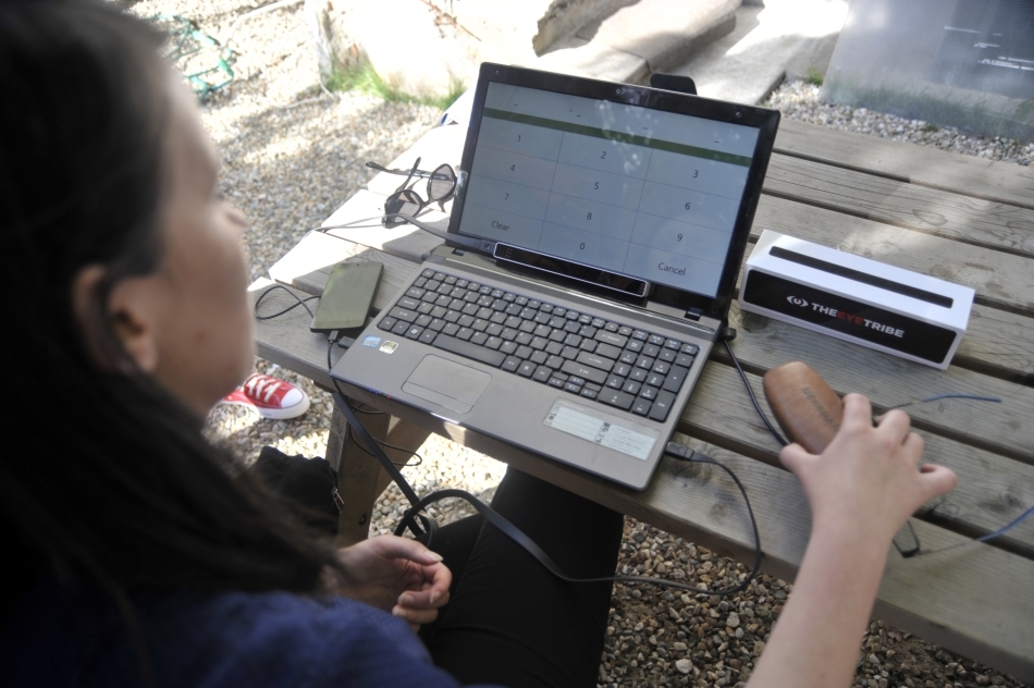 Potrivit studentei, aplicaţia se bazează pe un dispozitiv de urmărire a privirii, The Eye Tribe Tracker, care costă 99 de dolari şi care este sub forma unui paralelipiped de 20 de centimetri lungime şi o grosime de 1,9 centimetri, cu o greutate de 70 de grame.