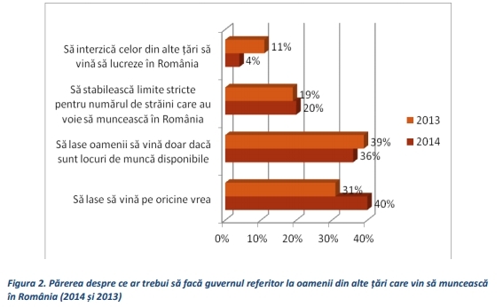 Astfel, 43 la sută dintre respondenţi consideră că străinii ar trebui să se poată stabili aici. Un procent aproape egal (44 la sută) ar dori, însă, să existe un anumit control, respectiv să fie stabilite doar anumite categorii care să beneficieze de acest drept. Şase procente dintre respondenţi au declarat că ar dori să se interzică imigranţilor, indiferent de categorie, să se stabilească aici, iar şapte la sută şi-au rezervat dreptul de a nu se pronunţa asupra subiectului.