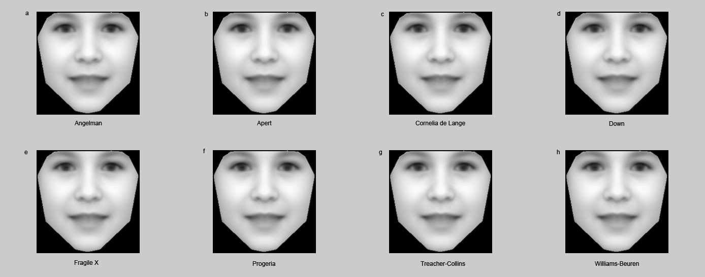 Multe boli genetice, printre care sindromul Down şi sindromul Angelman, sunt asociate cu anumite trăsături faciale.
