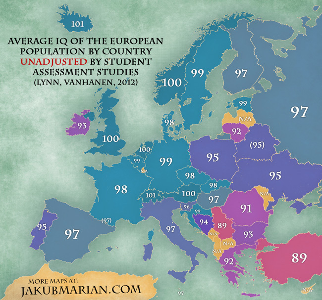 Home » D:News » Cât de inteligenţi sunt românii? Harta coeficientului de inteligenţă la nivel european (FOTO)