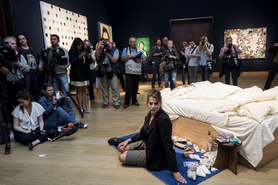 Instalaţia „My Bed”, creată în 1998, ce reprezintă patul nefăcut al artistei, înconjurat de mucuri de ţigară, prezervative folosite, sticle de vodcă şi un test de sarcină, a provocat scandal când a fost expus, în 1999, la Tate Gallery din Londra, însă în acelaşi an, Tracey Emin avea să se numere printre finaliştii prestigiosului premiu Turner cu această operă de artă.
