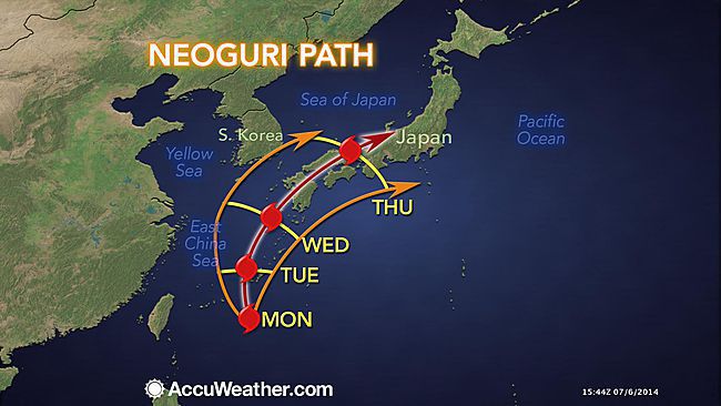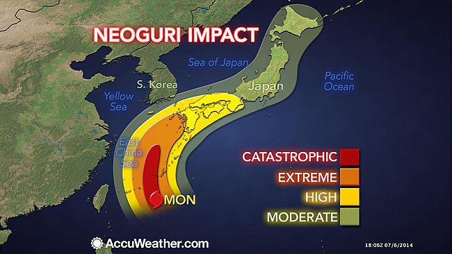 Neoguri se află la 300 de kilometri sud de insulă, unde ar urma să ajungă marţi dimineaţa, potrivit ultimelor date ale agenţiei, care nu exclude ca taifunul să ajungă şi în alte insule japoneze, dar cu o intensitate mai redusă.