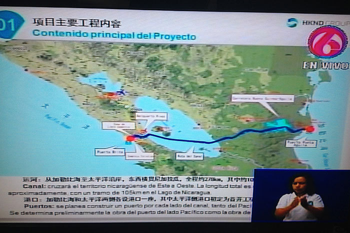Traseul canalului, cu o lungime de 172 mile (278 kilometri), între vărsarea râului Brito în Pacific şi cea a râului Punto Gorda în Marea Caraibilor, a fost propus de directorii HK Nicaragua Canal Development Investment (HKND), cu sediul în Hong Kong.