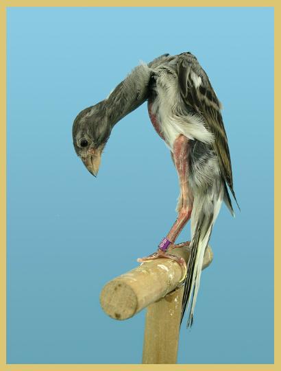 2. Canarul Gibber Italicus. Penajul acestei specii de canar este mai deosebit, penele fiind foarte tari, dure. Prin selecţie, crescătorul poate alege nu doar penele (moi sau dure), culoarea lor, forma scheletului, dar şi cântecul păsării. În acest caz, canarii pot suferi din cauza penelor care le cresc pe sub piele şi pot duce astfel la infecţii şi la răni.