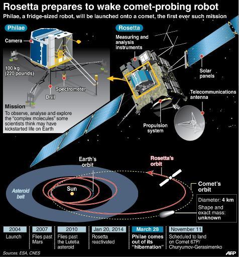 Lansată în spaţiu în 2004, sonda Rosetta a fost readusă la viaţă, aşa cum era prevăzut, pe 20 ianuarie, după o „comă artificială” de doi ani şi jumătate. De atunci, sonda îşi continuă drumul spre cometă – un bulgăre de gheaţă cu un diametru de aproximativ 4 kilometri – pe care o va escorta spre Soare.