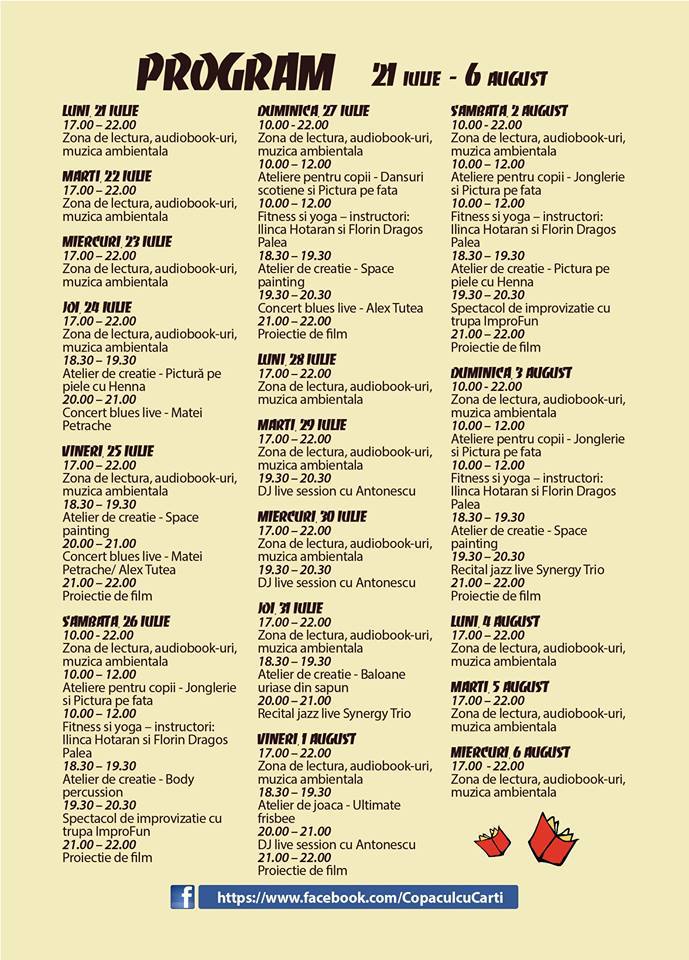 Astfel, în perioada 21 iulie – 6 august 2014, pe peluza din spatele restaurantului Monte Carlo vor fi amplasate şezlonguri pentru lectură şi un copac-butaforie de unde vor putea fi împrumutate cărţi.